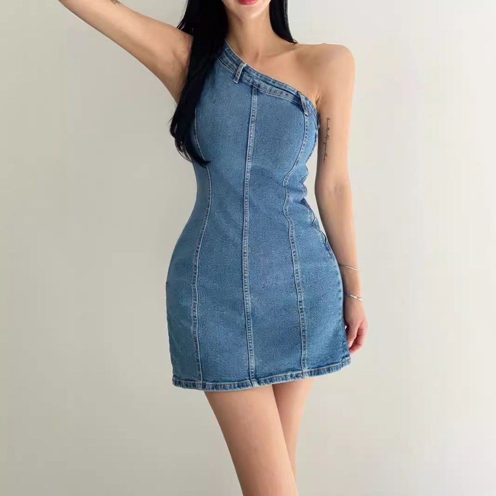 Sylvia one shoulder denim dress