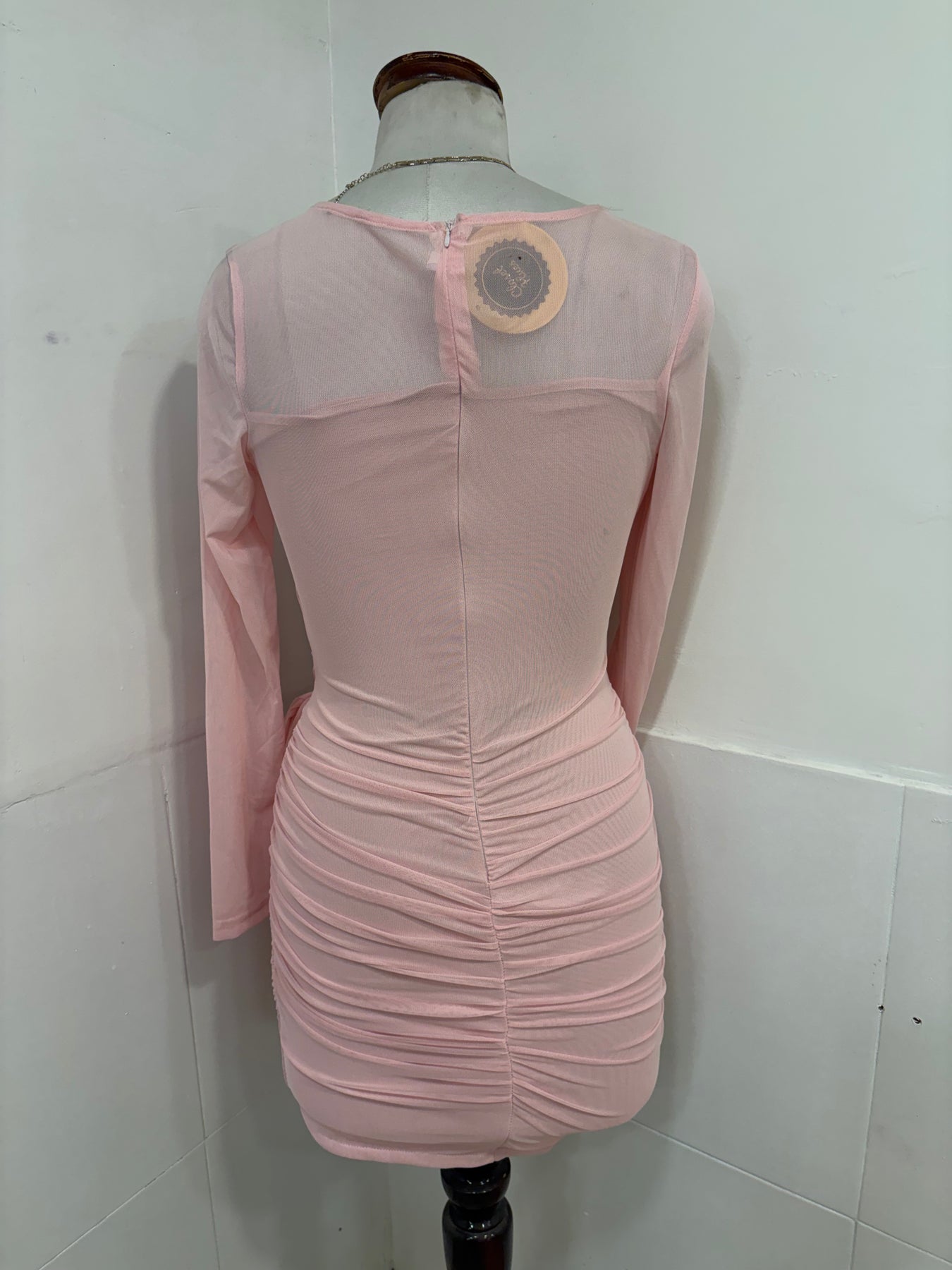 Baby pink Mesh full sleeves dress