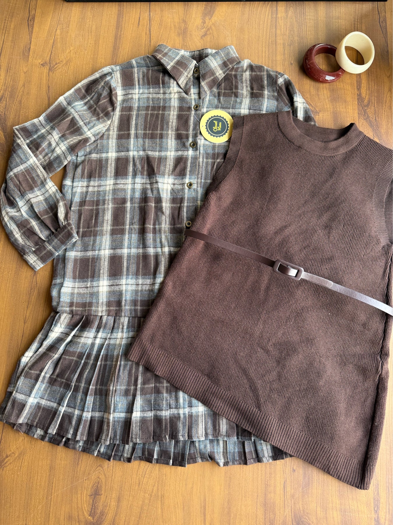 Tom knit sweater and chequered shirt dress